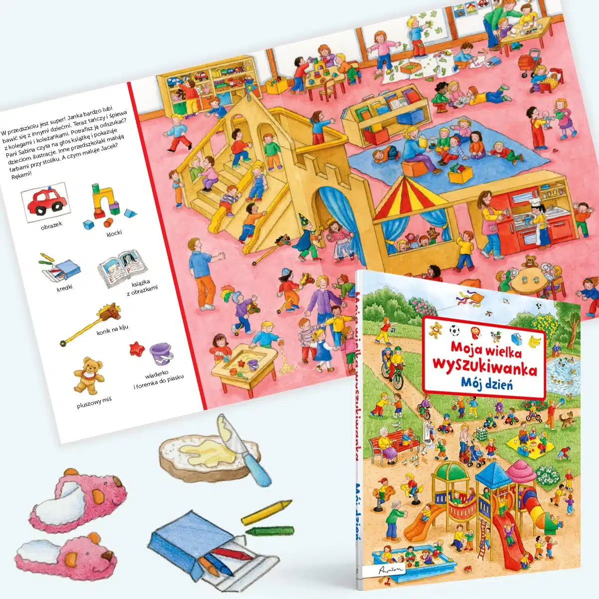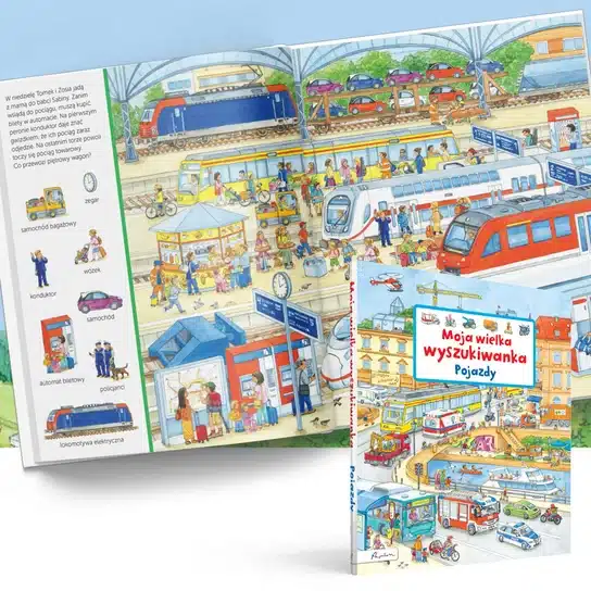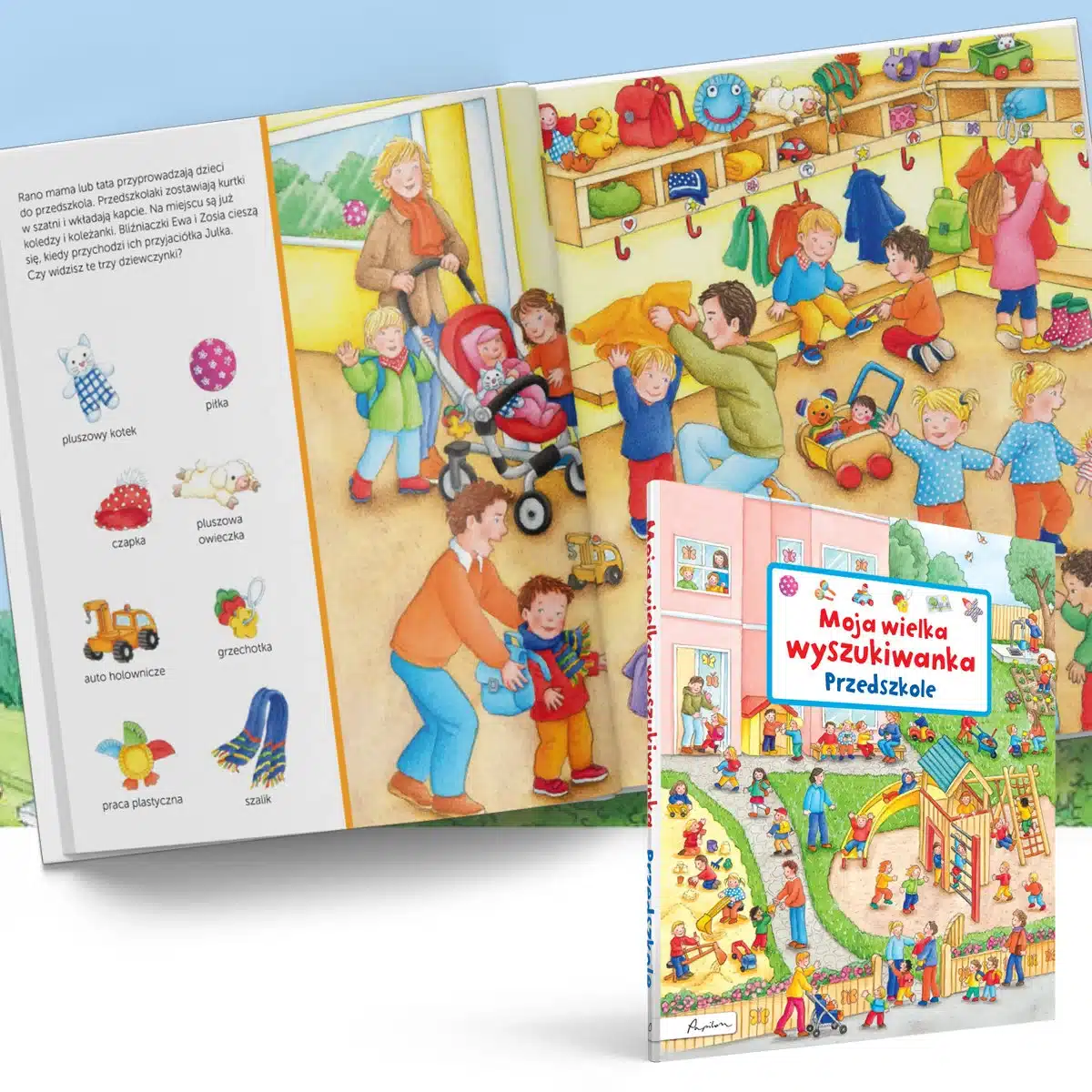 Seria Moja wielka wyszukiwanka to książki, które dzieciaki po prostu uwielbiają. Każda książka to 11 pełnych detali dużych ilustracji, na których maluch może szukać różnych elementów i odkrywać coś nowego za każdym razem. Do tego krótkie, proste informacje obok pomagają lepiej zrozumieć świat – od tematu pracy na roli, świata zwierząt i nazw zawodów, przez pojazdy i plac budowy, aż po codzienne życie w przedszkolu. To świetny sposób, żeby łączyć zabawę z nauką i spędzać czas razem z rodzicami, rodzeństwem lub kolegami.