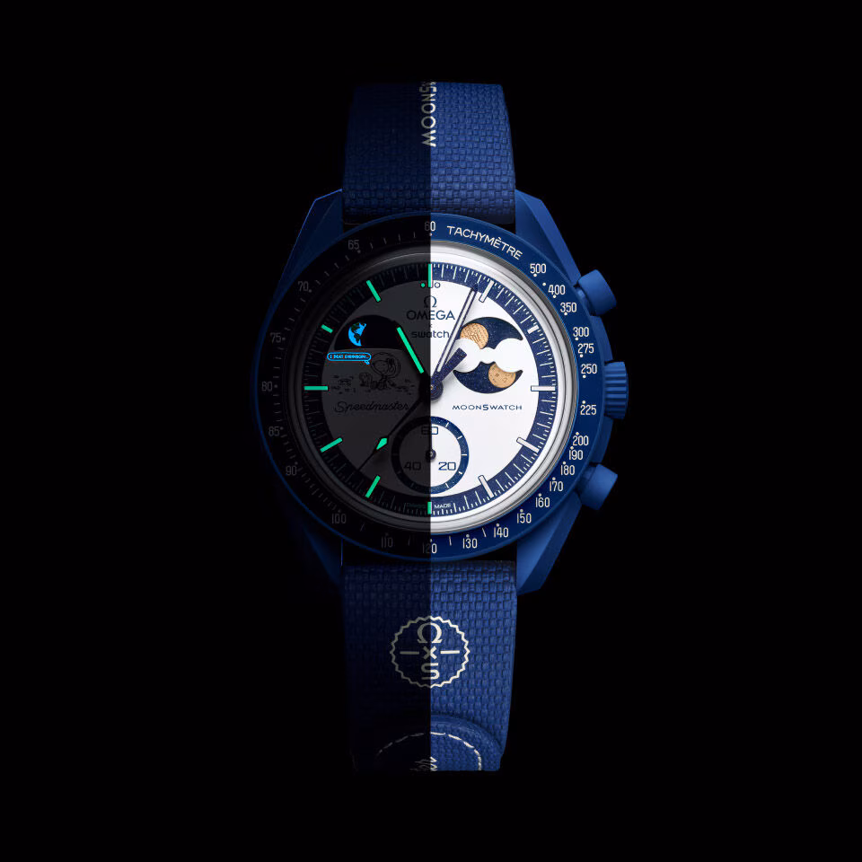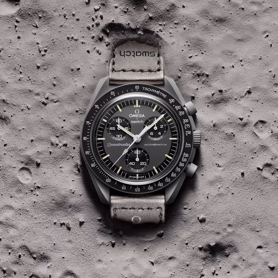 Zegarki Omega x Swatch MoonSwatch to kolorowa, zabawna interpretacja legendarnego „Moonwatcha” – pierwszego zegarka na Księżycu. Każdy model nawiązuje do innego ciała niebieskiego – od Słońca po Plutona – łącząc kosmiczną inspirację z lekką, bioceramiczną kopertą.